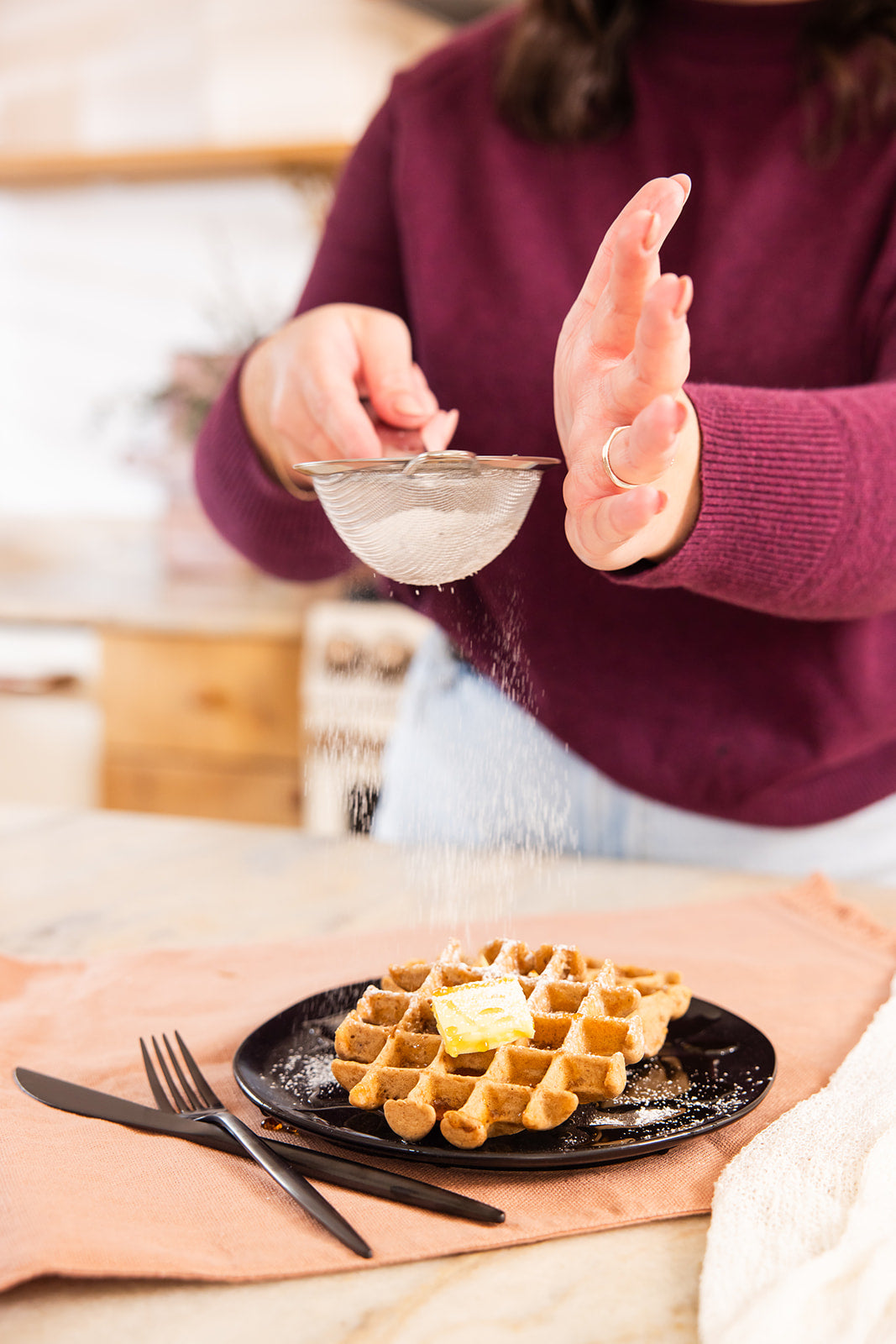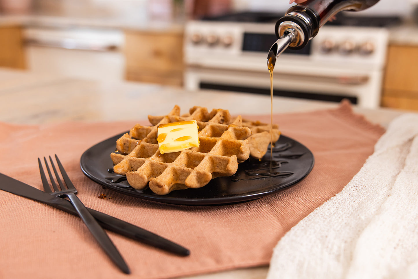 A delicious way to start the day, these waffles are amazing topped with fresh berries and syrup.