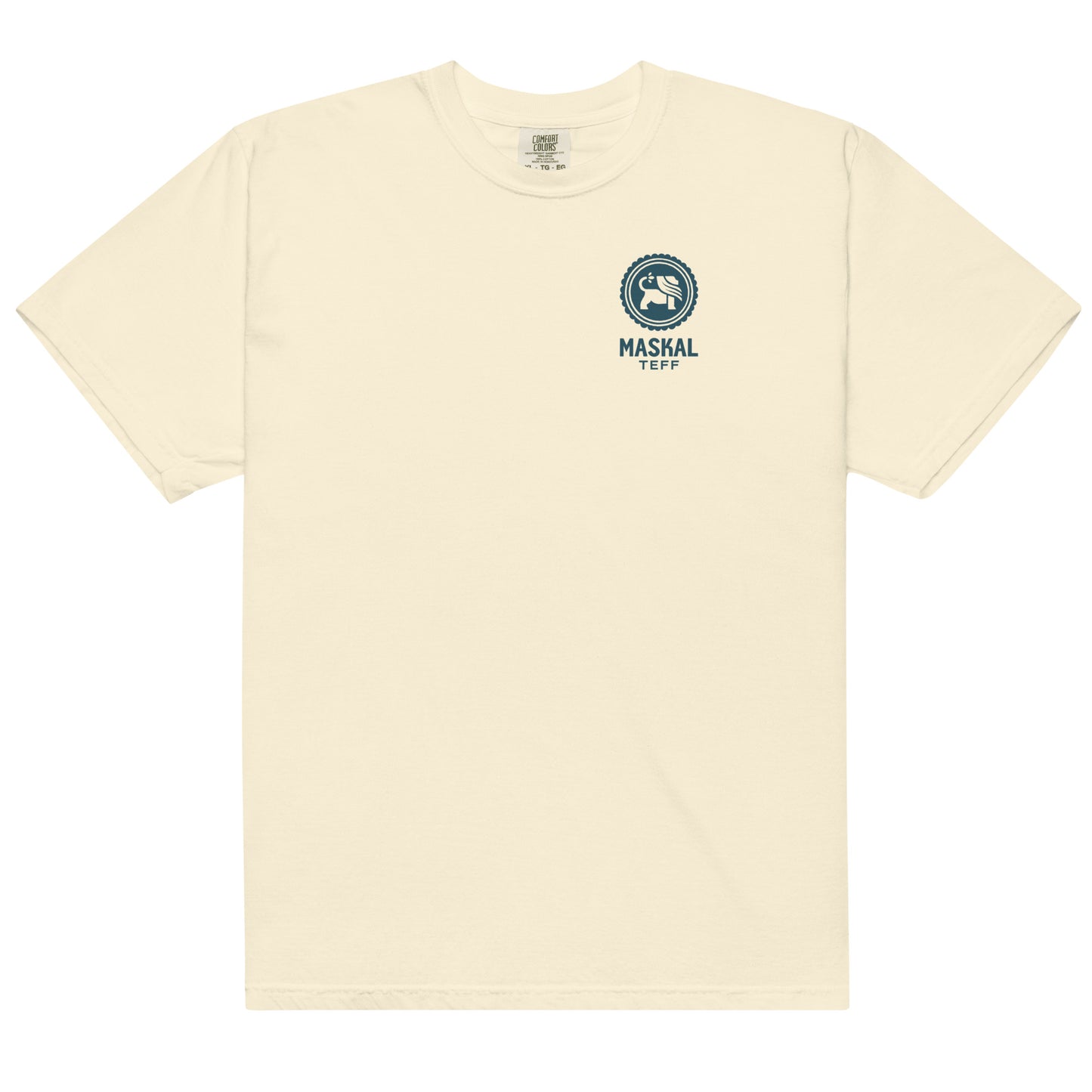 This Maskal Teff Lion t-shirt is printed with the Maskal Teff logo on the front and our teff lion on the back. It’s made of 100% heavyweight ring-spun cotton.